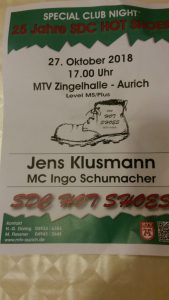 Die Gäste von den Hot Shoes Aurich (Angelika, Gertraud, Martina, Hans-Georg und Peter) brachten uns Flyer für Ihr 25. Jubiläum am 27.10.2018 mit: