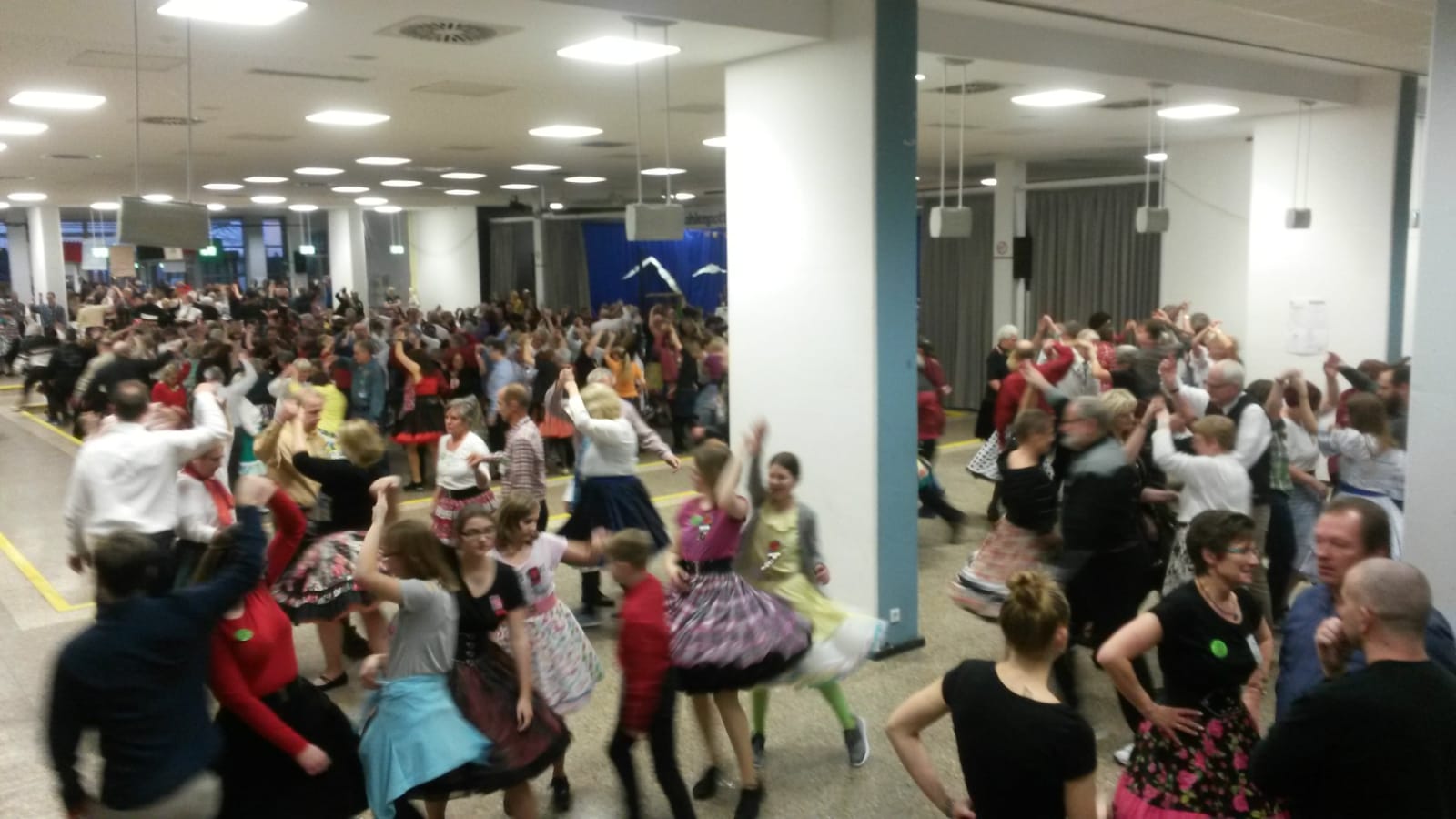 Ab 15:00 tobte das Haus, kochte die Tanzfläche. Mächtig gefordert von Topcallern war bei den über 600 Tänzern schnell die Betriebstemperatur überschritten. Selbst Kaffee und Kuchen ab 16:00 war kein Grund, die Tanzfläche abkühlen zu lassen. Erst gegen 19:00 ebbte das Tanzgeschehen ab, und wir versammelten uns um die Tanzfläche, um einen sehr lustigen Auftritt des Dortmunder Bayernvereins zu erleben. Es wurde aus vollem Herzen gejodelt oder wie soll man die lauten Gejuchtzschreie nennen, die das Schuhplattln begleiteten nennen??