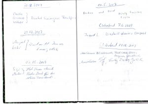 Die gescannten Seiten überlappen jeweils das Jahr. Also ist der Anfang von 2002 im letzten Bild aus 2001 zu finden …. usw.