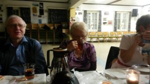 - Wir sitzen gemütlich zusammen, genießen die guten Sachen, die die Tänzer-/innen mitgebracht haben.